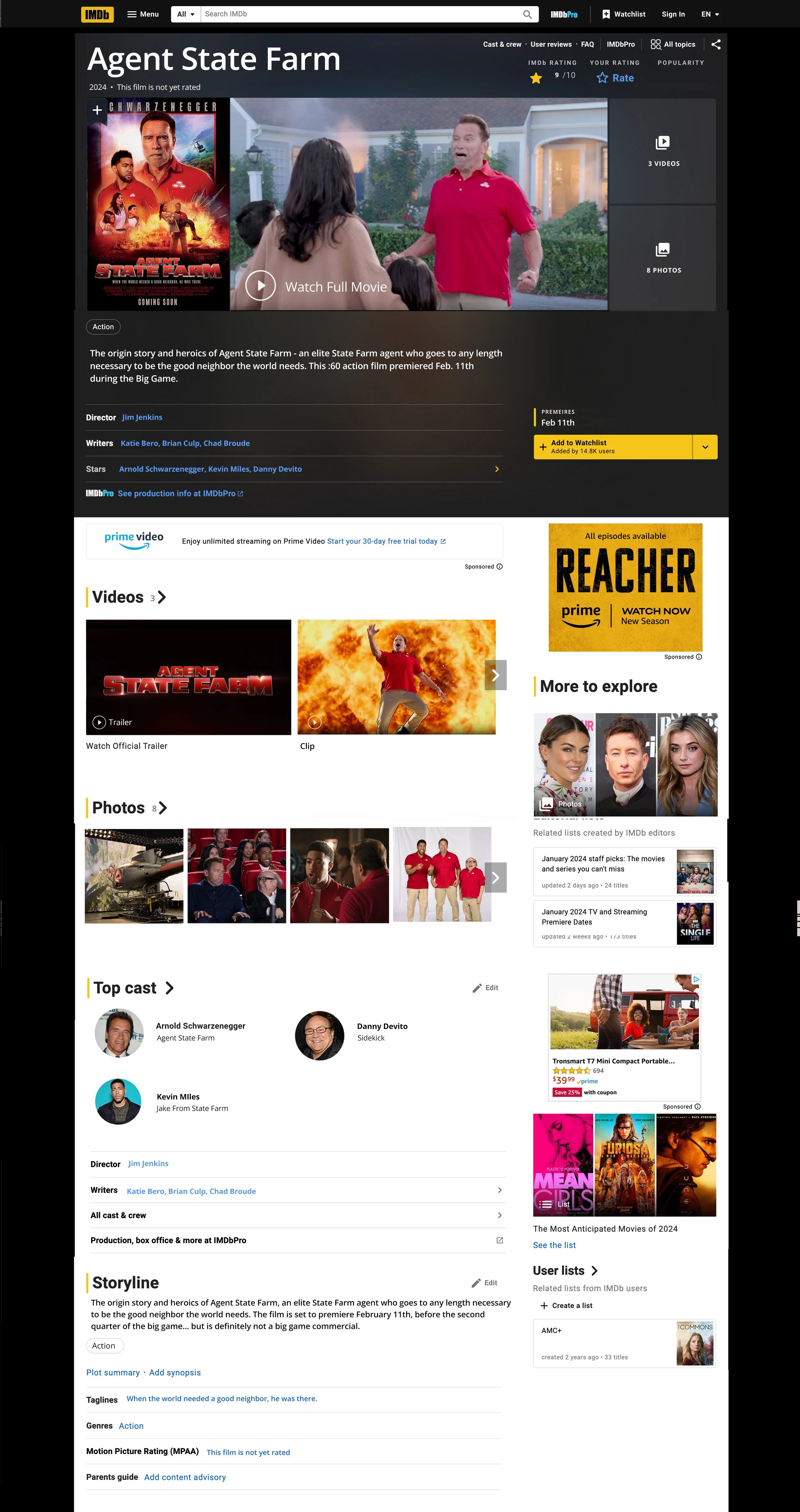 Led the development of the official IMDb page for "Agent State Farm", which legitimized the campaign within Hollywood circles and fooled the internet into believing a real movie was coming.